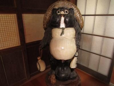 玄関には大きなタヌキさんが皆さんをお出迎え・・・