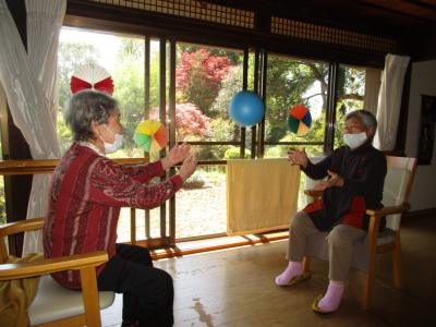 ボールを使った取り組みでは、息の合ったキャッチが展開されていました。