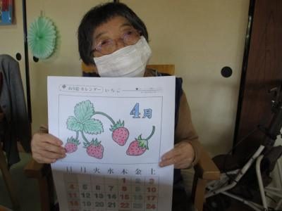 四月の暦の完成で~す😊 ニッコリ笑顔の母です😊