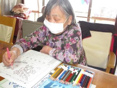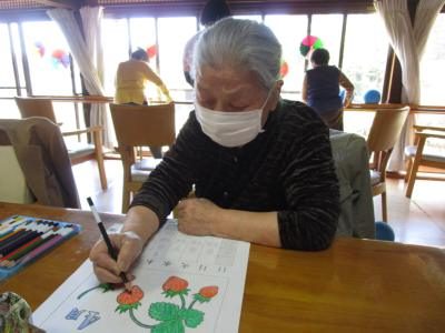 朝のセレモニーの後は、脳トレや機能訓練に取り組みます。