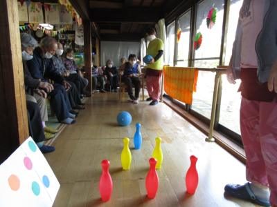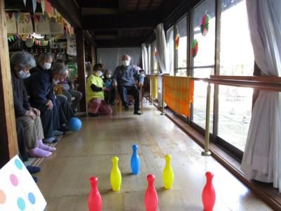 いつもは、ボールを手に接戦を繰り広げる皆さんですが、今日は足でボールを蹴りながらピンを倒すプレイです!