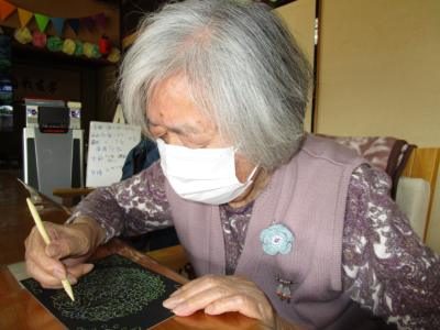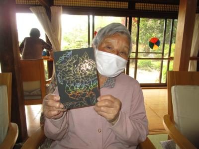 下絵が描かれた黒いシート面を、専用ペンでなぞりながら削っていくだけで、キラキラ光るホログラムの線や、美しい色の線が浮かびあがり、誰にでも簡単にスクラッチアートを楽しめ、出来栄えにも皆さん大満足\(^o^)/
