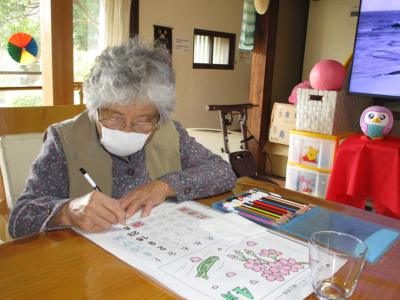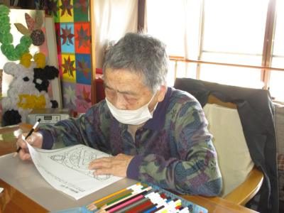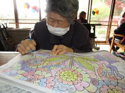塗り絵では、数字毎に色分けしながら丁寧に色鉛筆を滑らせていました。