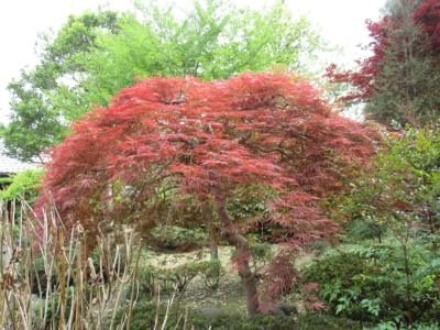 幸望庵のお庭に、春もみじが綺麗に色付いています