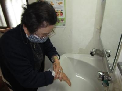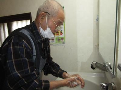 取り組み前の手洗い、そして手指の消毒をしっかりと行います。