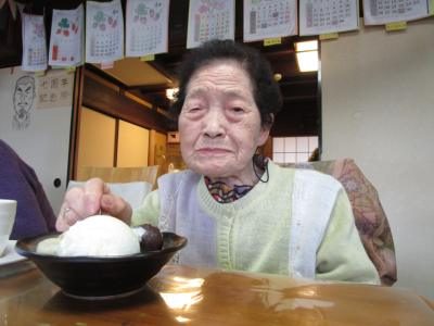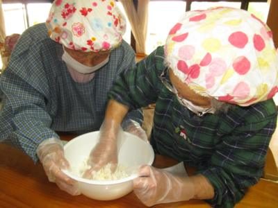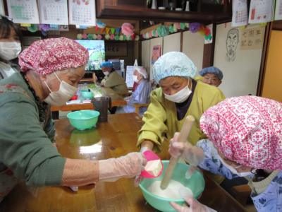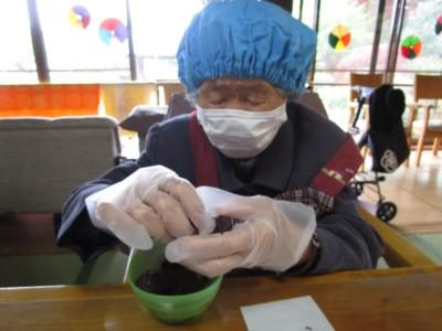 餡子を等分にして丸める母たち、手付きが慣れたもので感心します