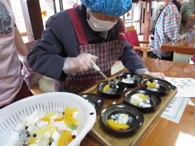 皆さんで手作りしたクリームあんみつはとぉ~っても美味しそうに出来ました。