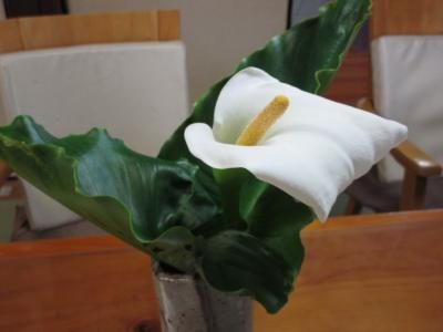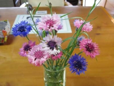 テーブルの上には母が持って来て下さったカラーと矢車草