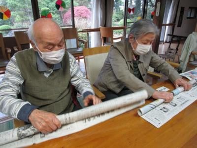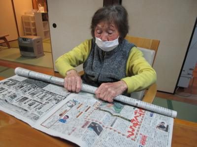 新聞紙をクルクルと丸めてMy輪っかを作ります