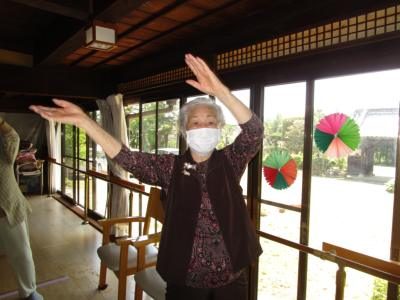 流れる曲に合わせて、楽しく身体を動かし体操に取り組まれていました