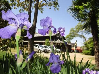 幸望庵のお庭の片隅に、ジャーマンアイリスが咲き始めました。