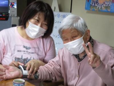 父や母の健康状態は久美ちゃんにお任せウィンク手 (チョキ)