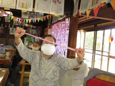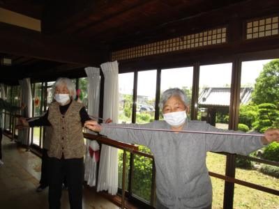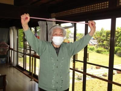 歌謡体操では、ゴムチューブを使って筋力の増強効果もバッチリです指でOK