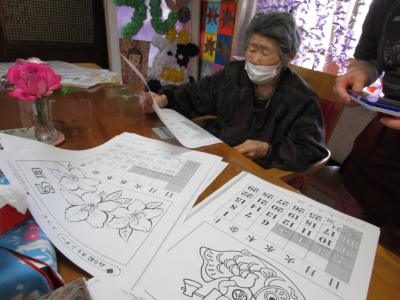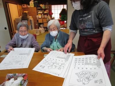 色使いにもあれやこれやと悩みながら、季節の暦を塗り上げて行く皆さんです。