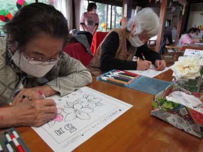 思い思いに五月の季節の情景を思い浮かべられ、色塗りを進める皆さん。