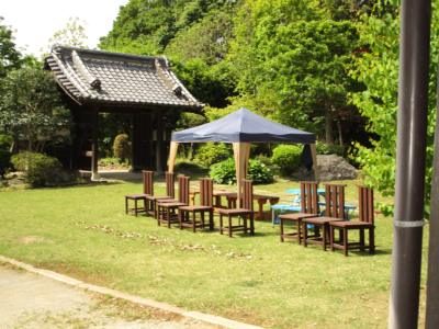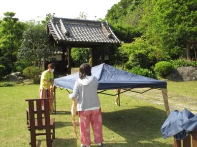 皆さんをお迎え前に、お庭にテント設営中のスタッフです!
