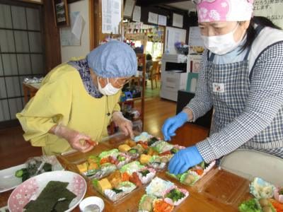 今日の昼食は、お庭でピクニック気分でお弁当を召し上がって頂こうと準備中🎶