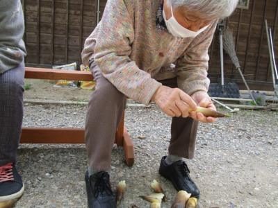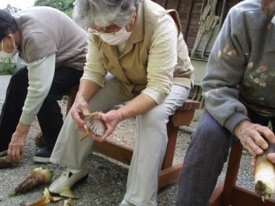 採った竹の子の皮を、皆さんで剝いて下さいました。