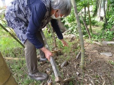 一旦お部屋に戻り、一休憩をしたのち・・・午後は、再び幸望庵のお庭に出て竹林に生えるタケノコ掘りを楽しまれました。