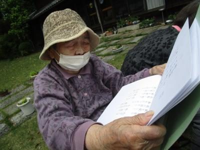 散歩した後は歌詞本を見ながら季節の歌を合唱