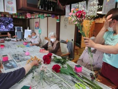 お部屋の中でも、お花を楽しむ母達の姿・・・