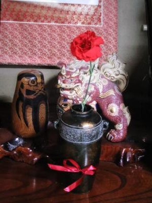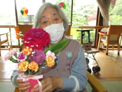 母が「ちょっと見て下さい」と仰いまして、昨日オーナーから頂きましたカーネーションを「早速飾ったのよ」と、嬉しそうに満面の笑顔で見せて下さいました。