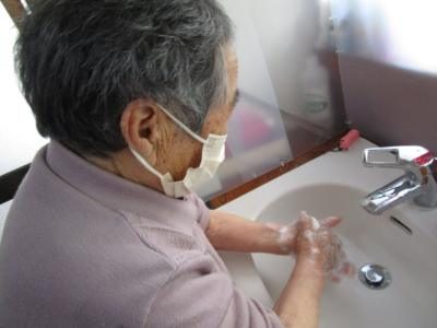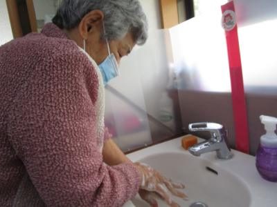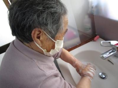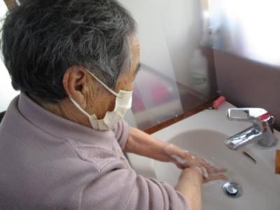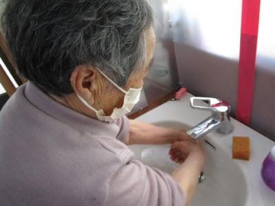 指先、爪の間、手首と洗ったら流水で充分に洗い流します