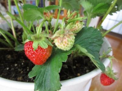 早速食べ頃になったイチゴを一ついただいたところ。。。