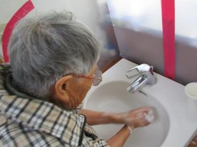 利用者様においてはご来庵したら洗面所へ直行し、手洗い、