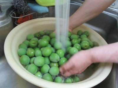 梅のエキスを出す為にフォークで青梅に傷をつけていきましょう