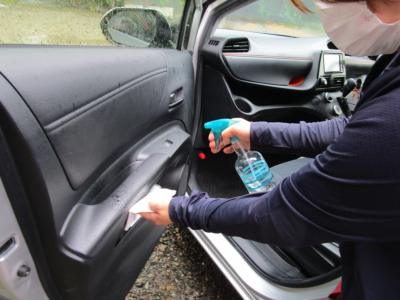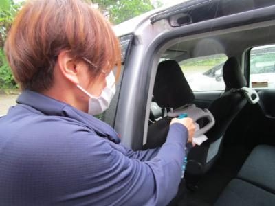 出発前には車内の消毒を行いコロナ感染予防に努めます。