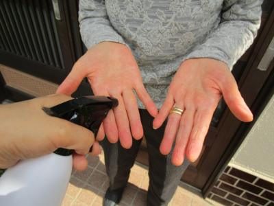 仕上げは手指の消毒を、こちらも手の平だけではなく、手の甲・爪の中としっかりすりこみますよ