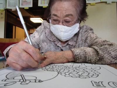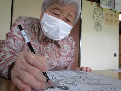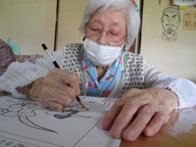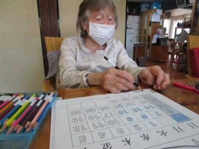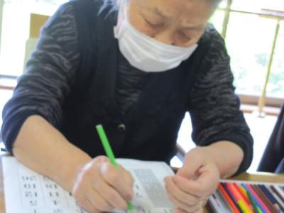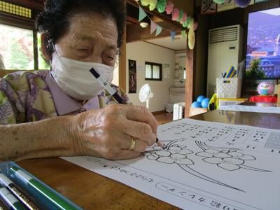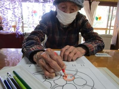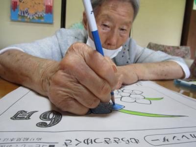 愛の幸望庵では父と母たちに毎月、暦塗り絵に取り組んでいただき