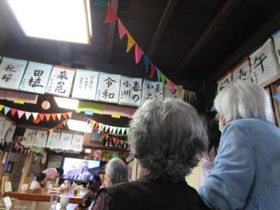 愛の父と母が書かれた【書】を1枚1枚真剣に眺め、ご自身の作品を見つけお互いに教え合っておりました