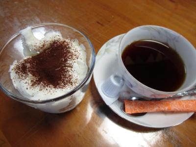 出来立てのティラミスを持ち、嬉しい表情の父と母です
