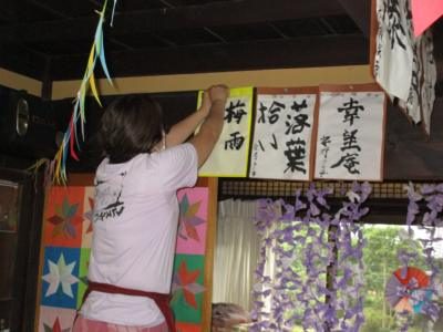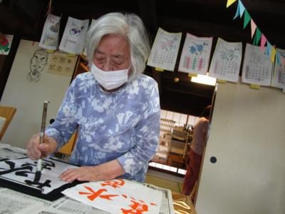 ご自分の好きな季語を選び、集中して筆を滑らせていますぴかぴか (新しい)
