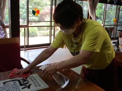 毎日定期的にテーブルや手すりの消毒を行います!