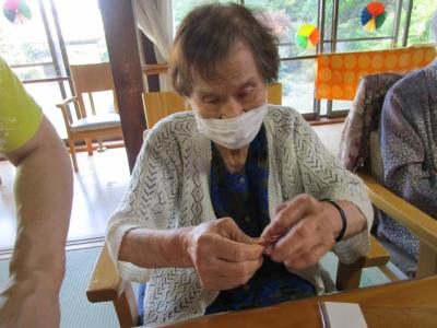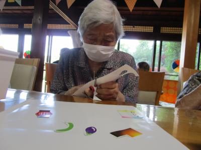ハサミで切ったり折り紙で紙風船や浴衣を作っていきますよ