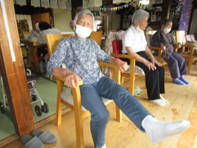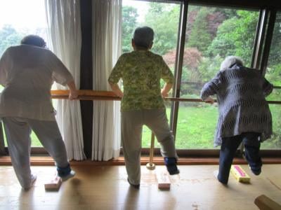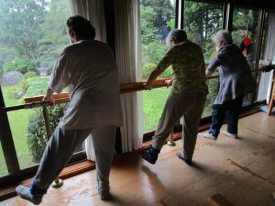 縁側では、機能訓練に取り組む皆さんの姿・・・