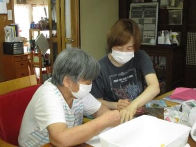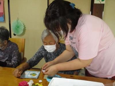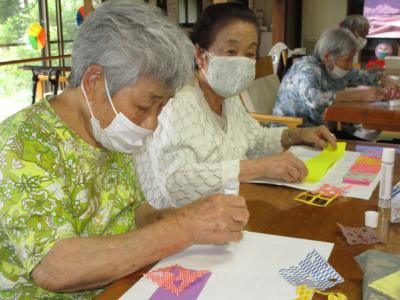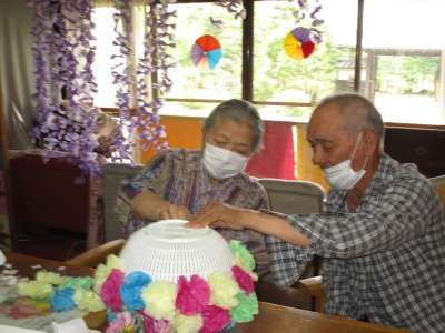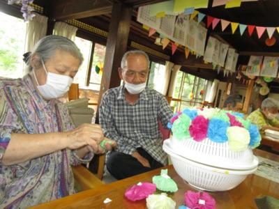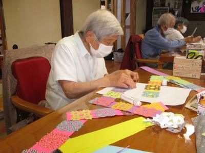 協同製作により、少しずつ少しずつ華やぎを見せながら素敵に完成して行く七夕の吹き流し・・・