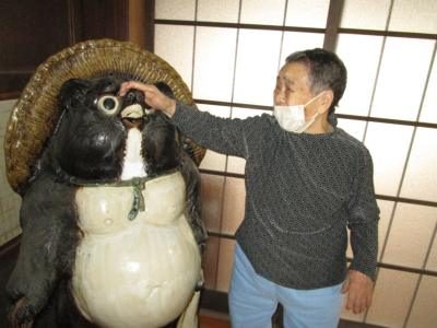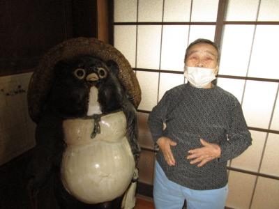 幸望庵の玄関でいつも皆さんをお出迎えしてくれている【タヌキさん】
