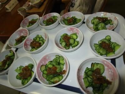 先週、皆さんで作りました【梅味噌】を乗せたキュウリです。