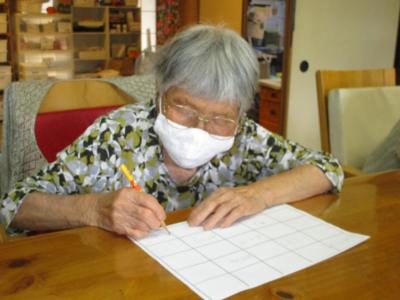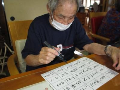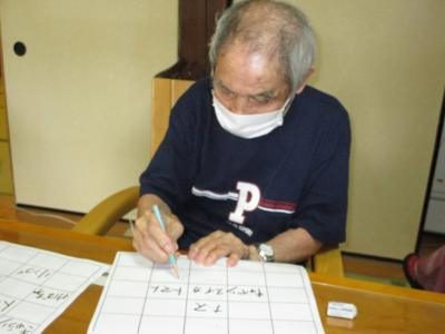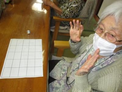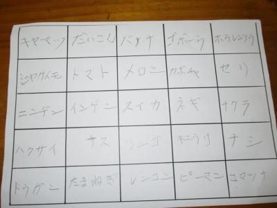ゲームを通して野菜や果物の名前を思い出したり、紙に書きだしたり(文字を書く)読み出された野菜や果物の名前をカードから探し出したり・・・本日のビンゴゲームの一連の作業は、楽しい中にも脳活性効果がバッチリ得られました