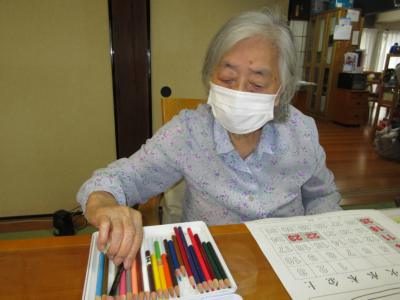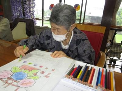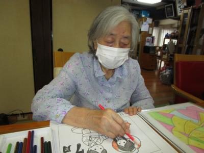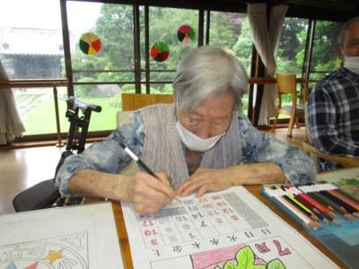 塗り絵を通して、巡る季節に思いを馳せながら取り組まれる父や母。