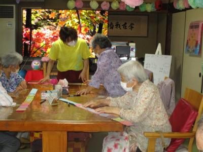 皆さん一人一人が製作に携わり、お花紙でお花を折ったり輪飾りを作って繋げたり・・・