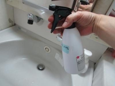 お一人終える毎に、次亜塩素酸水で消毒を行っています