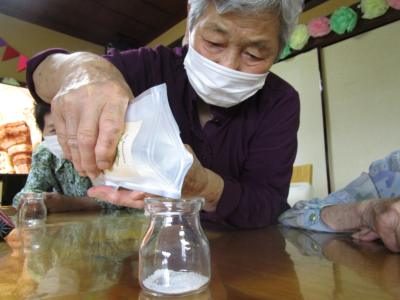 今のところ、瓶の中へ砂とジェルを入れるだけの簡単工程だと思いませんか