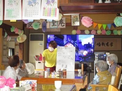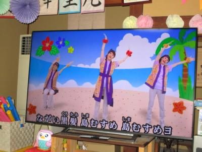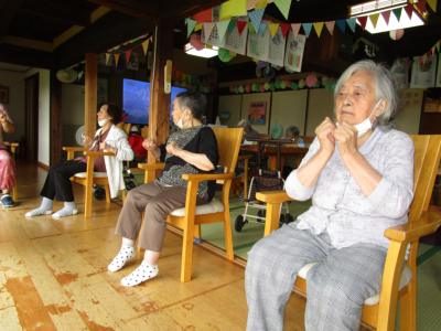 歌謡体操は、画面から流れる動きに注目しながら楽しく身体を動かし体操に取り組まれています