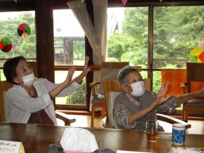 ぼけたらあかんの唱和の後は、合唱を行い歌謡体操で身体を動かすというのが一連の朝会のルーティーンとなっています。