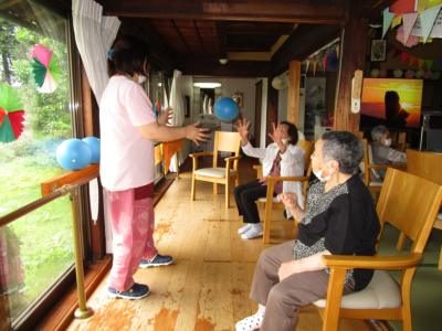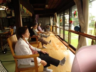 縁側で行われている機能訓練の様子をご覧頂きましょう~(^_-)-☆